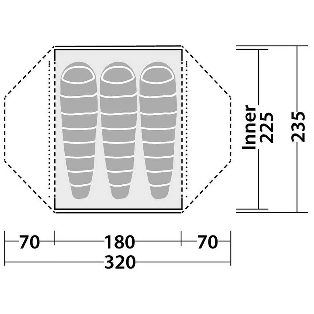 La combinaison du style dôme et du court faîtage transversal offre à trois personnes un espace de vie, de cuisine et de stockage flexible. L’excellente hauteur et la largeur intérieures permettent aux trois occupants de s’asseoir côte à côte, pas besoin de se relayer ! Les deux grandes portes permettent un accès facile pour tous et les grands porches jumeaux offrent amplement d’espace pour le stockage du matériel et les besoins de cuisine. Des embouts de verrouillage et des œillets doubles dans une sangle robuste sécurisent les poteaux internes, le poteau faîtier étant situé dans un manchon de poteau robuste.